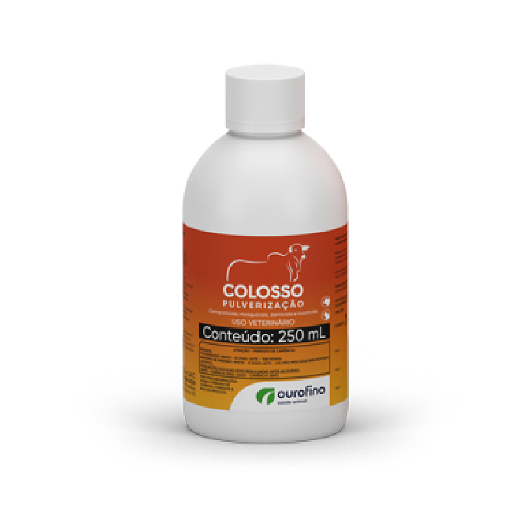 Homogeneizar a mistura/calda e pulverizar sobre todo o corpo do animal incluindo orelhas, barbela, axilas, virilhas, inserção da cauda e toda a parte inferior do animal; deixando-o completamente molhado, para que o produto atinja mesmo carrapatos pequenos e em partes do corpo onde não são vistos com facilidade. Utilizar de 4 a 5 litros de calda por animal de acordo com a extensão corporal, ou seja, quantidade suficiente para molhar todo o corpo do animal. Para bezerros, reduzir o volume de calda aplicado para 3,5 L/animal. Após a diluição, utilizar a calda contendo COLOSSO PULVERIZAÇÃO em até 24 horas. Via banheiro de imersão: Realizar uma pré-mistura do produto com água limpa em um balde, agitando até a completa homogeneização.